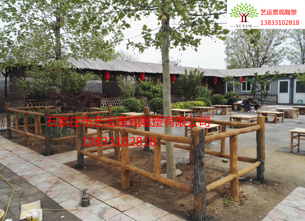 農(nóng)家院仿木欄桿圍欄以鋼筋混凝土為主要原料。藝運(yùn)景觀現(xiàn)場制作完成后的作品具有色澤、紋理逼真;堅(jiān)固耐用;免維護(hù);防偷盜等優(yōu)點(diǎn),與自然生態(tài)環(huán)境搭配非常和諧。仿木仿石園林景觀產(chǎn)品既能滿足園林綠化設(shè)施或戶外休閑用品的實(shí)用功能又美化了環(huán)境,深得用戶喜愛。