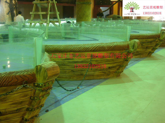 觀賞缸仿木船造型