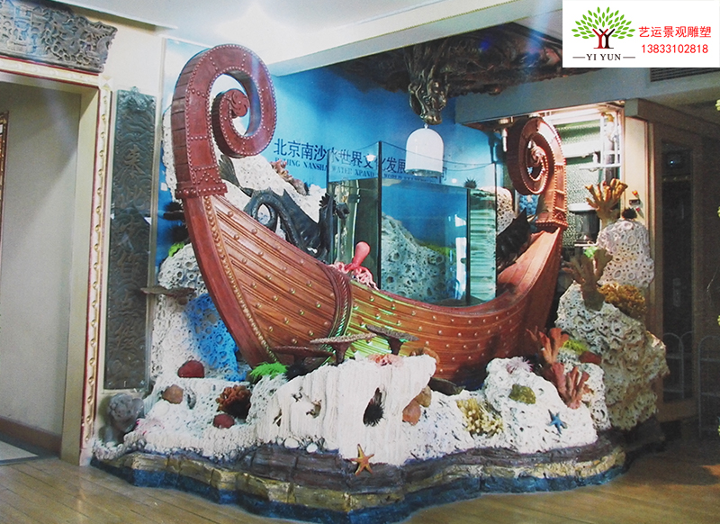 這件精致而復雜的海洋雕塑是以仿真珊瑚礁為主體,水泥材質制作,放在室內或室外很是美觀。