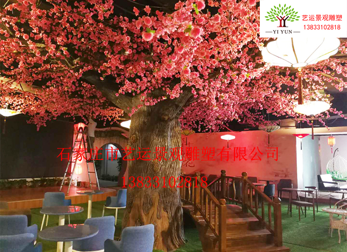 工藝主材質(zhì):水泥、鋼筋、仿真桃花。樹身主體可根據(jù)客戶要求定制不同造型。