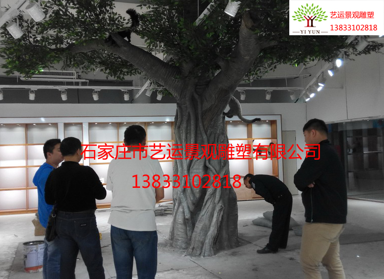 這棵假樹中間是60×60厘米的水泥柱子,藝運景觀可根據(jù)客戶不同需求定制不同造型的仿真樹。假樹特點:造型奇特,形態(tài)逼真,雕塑師可根據(jù)實際環(huán)境進行隨意的設計和裝飾,避免了鮮活樹木受氣候,光照,水分等自然因素的制約。仿真樹無需水土、養(yǎng)分,易于養(yǎng)護,不受自然氣候的影響,四季長青。