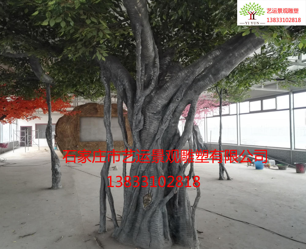 生態(tài)園餐廳仿真榕樹非自然樹種,是一種假樹。藝運景觀雕塑師用獨特的手法塑造而成,以在特定場合展現(xiàn)自然界樹木真實效果的裝飾品。特點:造型奇特,受空間限制小。無需水土、養(yǎng)分,易于養(yǎng)護,不受自然氣候的影響。形態(tài)逼真,客戶可根據(jù)自己的喜好隨意定制造型,四季長青。