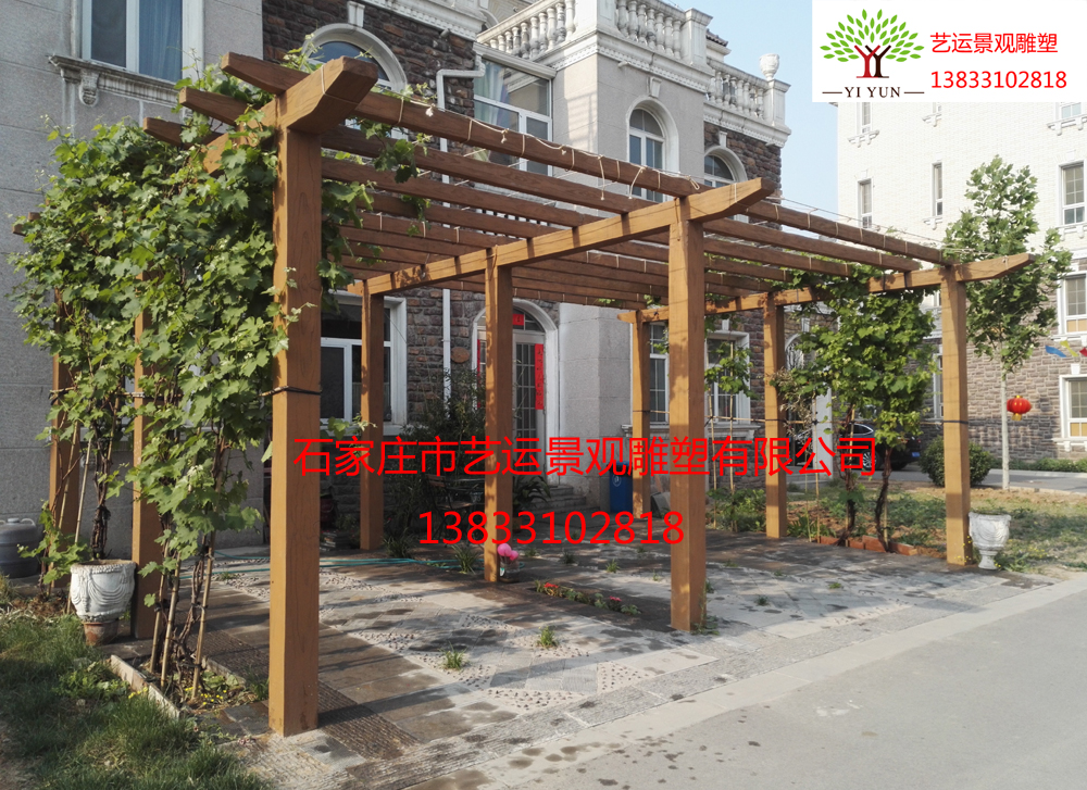 以鋼筋混凝土為主要原料,藝運景觀仿木廊架木紋由雕塑師手工刻畫而成,具有色澤、紋理逼真;堅固耐用;免維護(hù)等優(yōu)點,與自然生態(tài)環(huán)境搭配非常和諧。